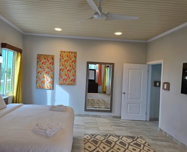 Experience ultimate comfort in our deluxe room, a spacious and private retreat designed for your relaxation. This expansive suite features a luxurious king-size bed, a fully equipped kitchen for your convenience, and a separate, stylishly furnished living room perfect for unwinding. Step out onto your private balcony to enjoy breathtaking, panoramic views of the beach and the ocean.